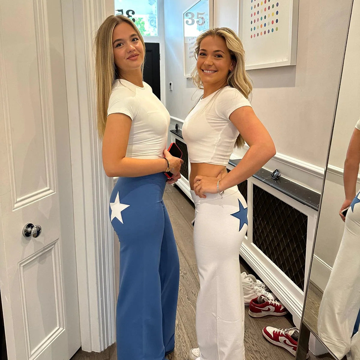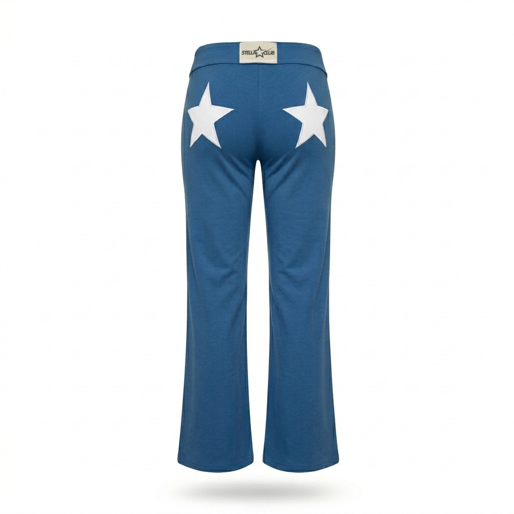 Pantalon en jersey premium ultra doux, à coupe large avec taille rabattable (à porter haute ou basse). Fini avec nos étoiles brodées signature Stella Club pour une touche iconique et féminine. Confort absolu, coupe flatteuse, parfait au quotidien.